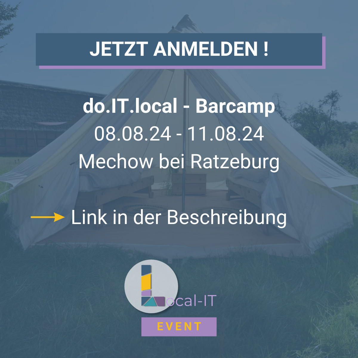 Das Do.IT.local Barcamp findet zum vierten Mal vom Do, 08. Aug bis zum So, 11. Aug statt. Seid Teil einer inspirierenden Gemeinschaft von Gleichgesinnten, die zusammenkommen, um zu lernen, zu teilen und zu wachsen.